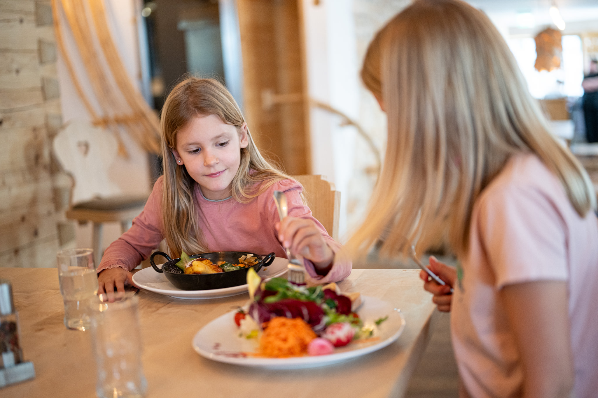 Eigentlich ist die DorfAlpe in Fischen ein Gesamtkunstwerk. Denn die Speisen und das Ambiente sind sorgsam aufeinander abgestimmt. In den Gasträumen spürt man die Geschichte der Fischener DorfAlpe, die bis ins Jahr 1640 zurückreicht. Holz, das in der nahen Umgebung geschlagen wurde, bestimmt das Interieur auf moderne Art, ohne in kitschigen Folklorismus zu verfallen.
